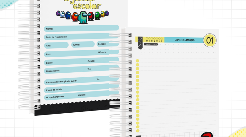 Kit Digital Encadernação Escolar –Among Us