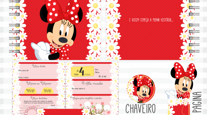 Kit Digital Combo Livro do Bebê – Minnie (Livro de recordações, Bloquinho, Caderneta, Porta documentos, Mesversário)