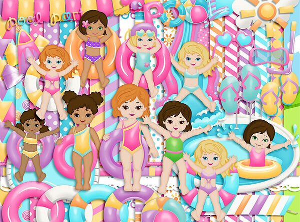 Kit Scrap Digital Pool Party Menina